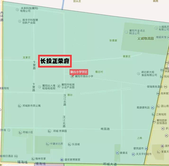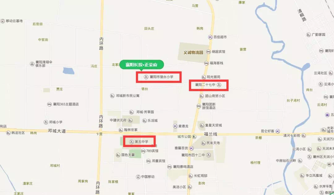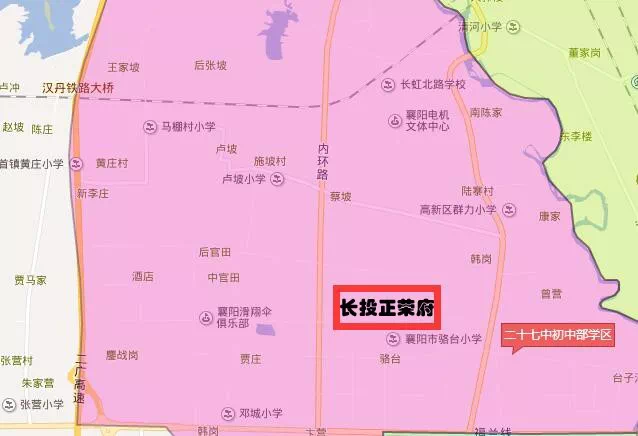 从学区划分中可以看到,正荣府紧邻骆台小学,距离九年一贯制的襄阳二十七中学也非常近。