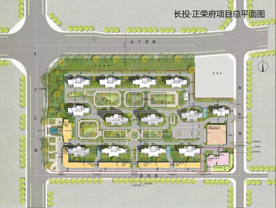 长投·正荣府位于汉江北路与台子湾路的交汇处。项目总占地面积约6.8万方,总建筑面积约27万方(住宅建面约18.4万方),采用新古典主义风格打造,规划12栋板式住宅,全部南北通透户型设计,约40~60米楼间距,是70年产权的精装修住宅。绿化为35%,容积率为3,总共有1600多户。
