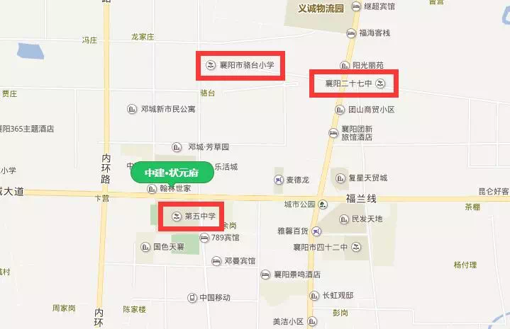此外,中建状元府也拥有同样的教育资源。同样划分在骆台小学学区和二十七中学学区,但状元府正对于襄阳五中,距离五中的位置更近,一直以来致力于打造“人文府邸”。