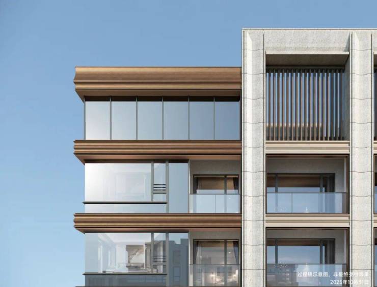 中海环宇玖章可视面都是 古铜色金属铝板、米黄色铝板/石材、边套270°大转角飘窗 ,且从正面、侧面到背面,立面都保持精致统一,四面平权尽显高端质感。