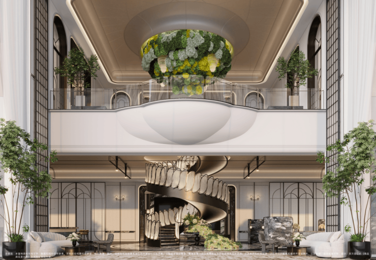 外立面方面,项目采用 超大比例弧形铝板线条搭配上弧面窄框 ,大量 弧形玻璃 ,灵动通透,缔造上海南美学地标。