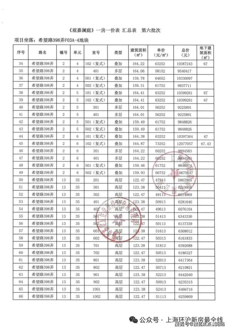 本批次一房一价表如下: