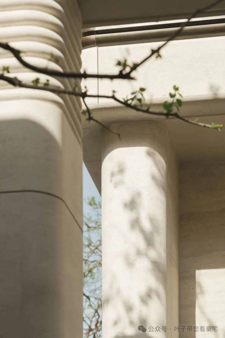 建筑立面对标伦敦切尔西将军公馆与怀特利酒店的美学风格,采用 进口白世茂石材 ,运用 “揉石成缎” 的手法,经过十几道复杂工序雕琢,竖向构件采用圆弧形石材及瓦楞板,窗框采用转角整体拉弯工艺,植入家族式金属勋章,每一处细节都彰显高定质感与归家仪式感。14-25 层小高层挺拔大气,线条流畅简洁,无连廊设计,最大化保障采光与通风,金属线条与石材肌理碰撞,兼具现代感与高级感,成为老静安一道靓丽建筑风景线。