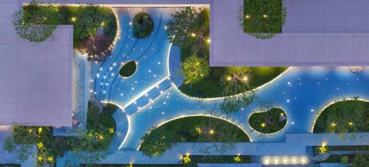 三重归家仪式。 第一重,泛星大堂。第二重,聆星客厅。第三重,伴星入户花园。社区核心景观——星光溪涧。灵感取自于西湖边的九溪十八涧,把江南的山、江南的石、江南的小桥和流水都搬进星曜社区。