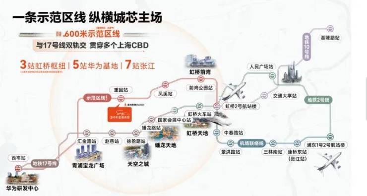 项目直线距离国家会展中心仅约 2 公里,步行可达虹桥核心商圈,无缝承接大虹桥的商业、商务、会展资源外溢;直线距离虹桥枢纽仅约 3 公里,通过虹桥枢纽可快速通达上海全城与长三角城市群,实现 “1 小时长三角、30 分钟上海主城” 的便捷出行。同时,项目周边环绕着徐泾老集镇、华漕生活圈等成熟居住区,生活氛围浓厚,配套完善,无需等待规划落地,入住即可享受成熟的城市生活,真正实现了 “核心区位 + 成熟配套 + 产业赋能” 的三重价值叠加。