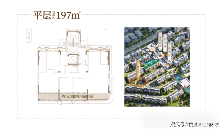平层建面约197㎡凭借约16.2米四开间朝南+一层一户的设计,打造开放而又内敛的日常仪式感;