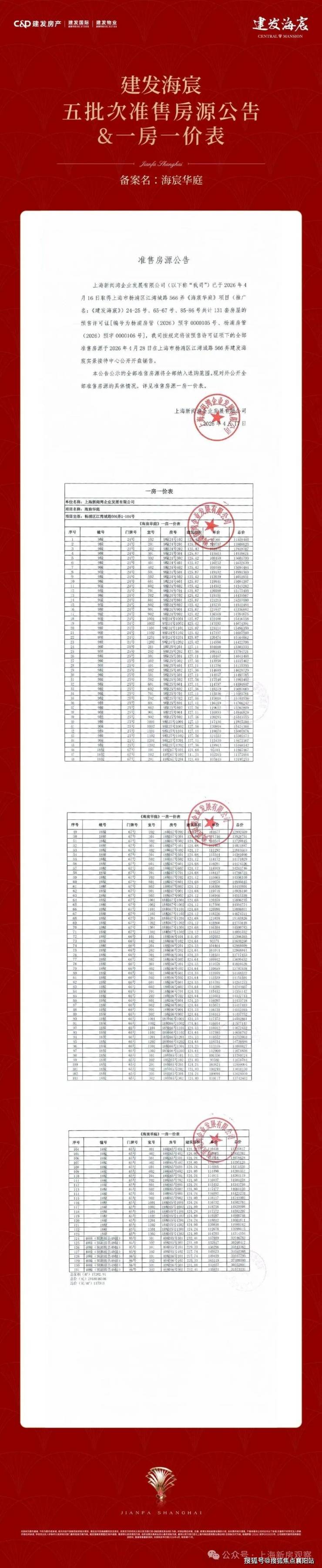 最新消息!新江湾「建发海宸」四开四捷!五批次已取证,明日(4月18日)认购盛启!推出建面约103-233㎡洋房&叠加,均价117343元/㎡!认购金100万;认购时间:4月18日-4月22日;售楼处线上火热预约中!