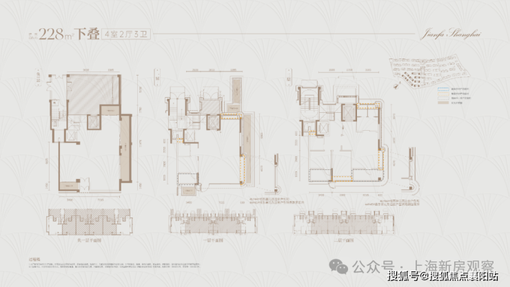 「传宸」下叠228㎡,拥享建面约110㎡南向花园(边厅)、建面约60㎡巨幕宽厅、建面约50㎡主卧套房以及建面超200㎡双层地下空间,一层一境,进阶三代阖居生活;