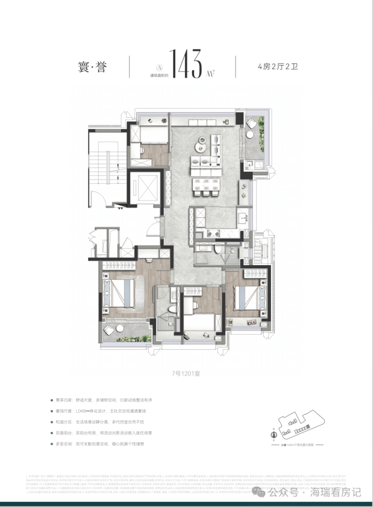 (三)建面约 143㎡奢阔四房:塔尖家庭臻选,一步到位理想居所