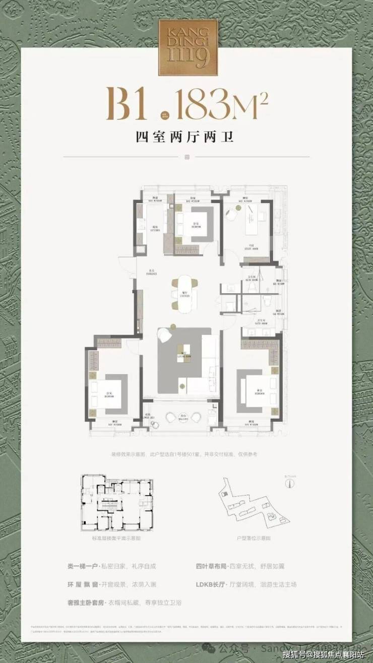 最新信息:康定壹拾玖即将清盘,目前还有少量房源,建面约177-238㎡3-4房,均价17.18万/㎡,可直接落位!