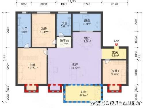 格局 :南北通透,全明格局,南向 3+1 面宽,面宽约 11.8 米。
