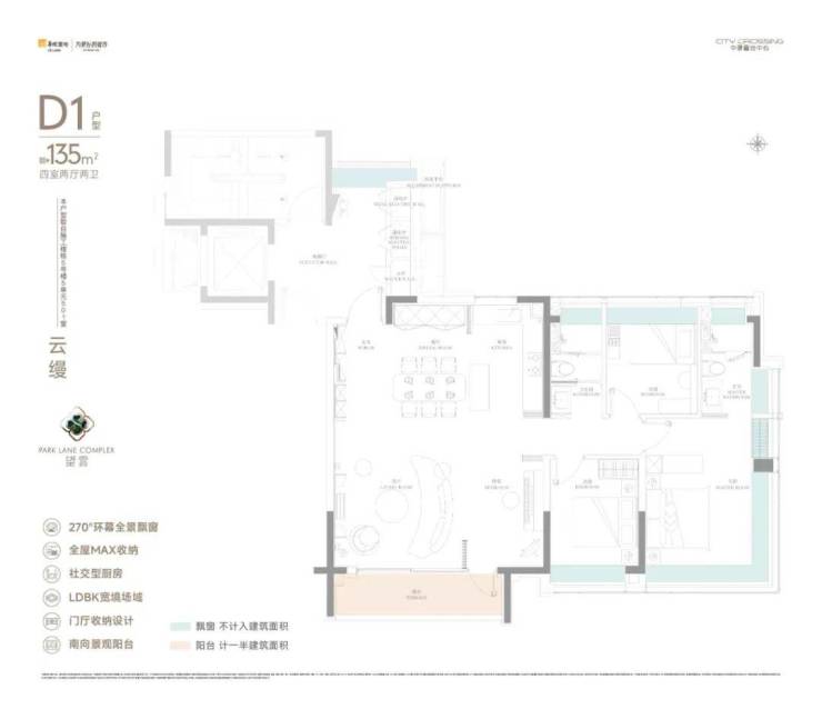 133㎡的四房产品是项目的明星户型,板块内以及整个中环难得的改善型作品。