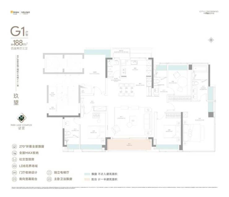 电梯厅全明通透+类一梯一户设计,满足大户型业主对于入户私密性的生活需求。此外还增加两处优秀设计: 多飘窗和惊艳的MAX收纳尺度。