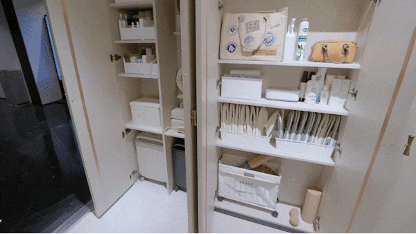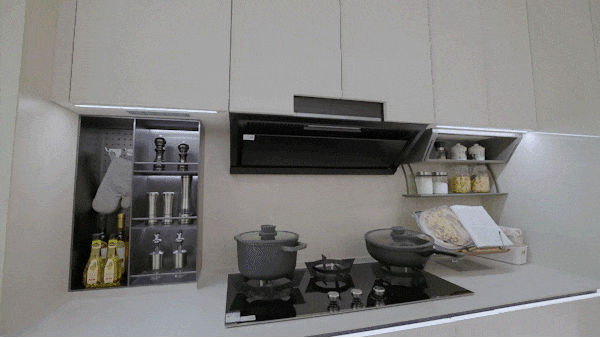 配合 抽拉置物架、地柜联动拉篮、天使下拉拉篮、三重骑马柜、随心抽、窄柜高深拉篮 的组合拳,每一种都像是为不同的物品量身定制。