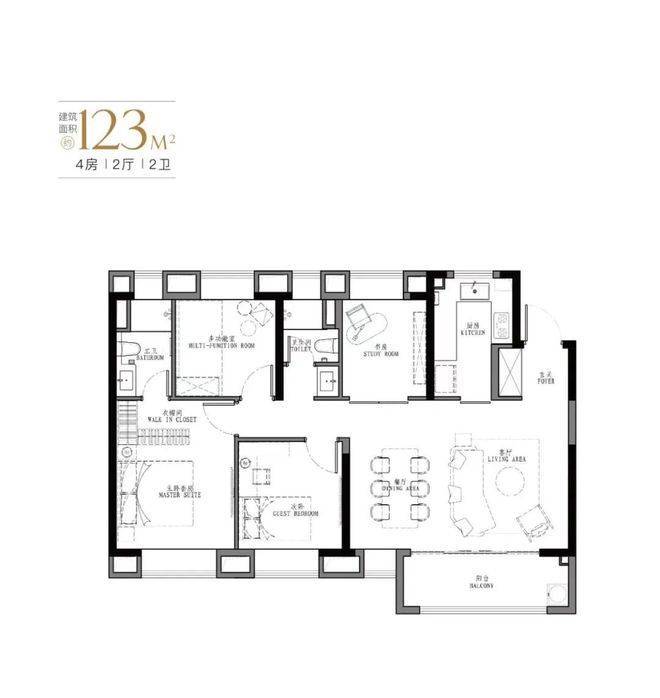 「星尚·观澜世嘉」共计4种户型,103㎡、107㎡的三房两厅两卫及123㎡、129㎡的四房两厅两卫,共计550套可售住宅。