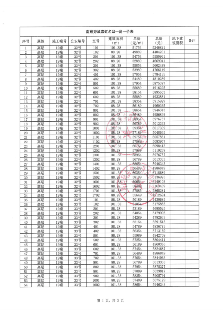 一房一价表:
