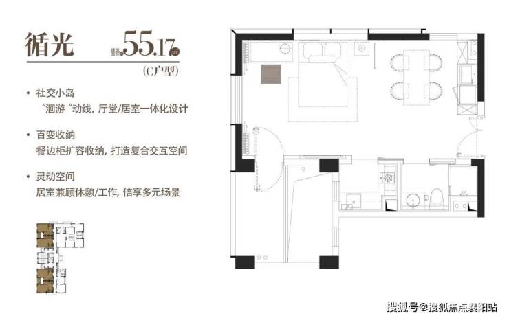隐形设计的随心分隔厅,扩容出独立客厅与卧室,瞰景落地窗是家的灵魂,把阳光与绿意引入室内,自由切换生活与自然的边界;科学分区的卫浴空间干湿分离,告别潮湿杂乱,进阶舒适生活;每一寸空间都被精准利用,小面积也能拥有不打折的居住质感。