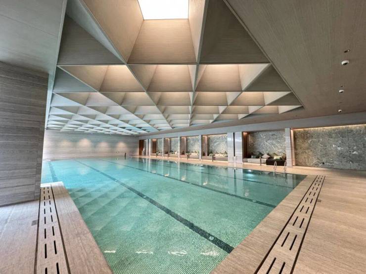 而未来的会所部分基本都已实景呈现,泳池、健身设施、宴客厅、水吧等等高端服务功能一应俱全。