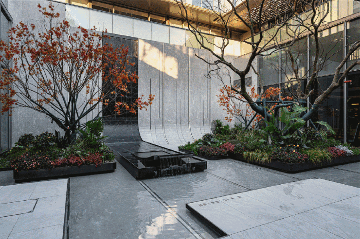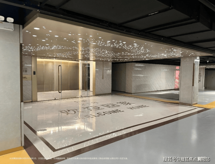 实景呈现的星空顶地库,车行坡道精工打造,墙顶是铝板、地面是仿石砖,让归家之路充满仪式感。