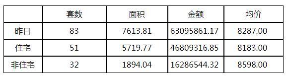 其中住宅成交51套,面积5719.77平方米,金额46809316.85元,均价8183.00元每平方;