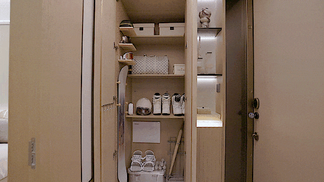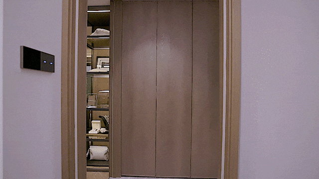 比如玄关部分别有洞天, 步入式储藏空间面积接近4㎡,甚至比滨江部分230-350㎡的储藏室要来得大 , 提供了充足的空间来放置洗烘机、季节性物品、超大件行李箱、快递等等,家居生活更加井井有条。