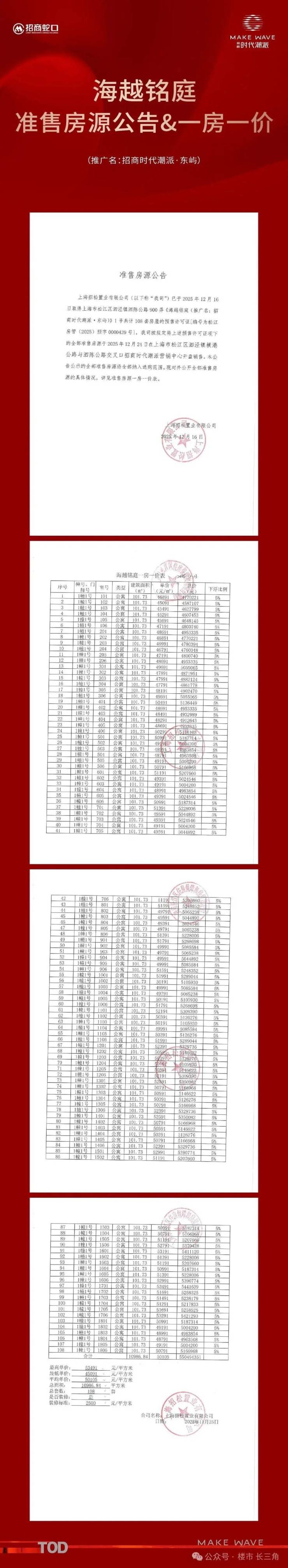 松江泗泾9号线TOD神盘 招商时代潮派 建面约102㎡三房,均价5.01万/㎡!附看房报名通道