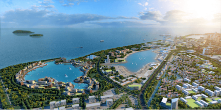 以长达9公里的内海活力水岸为链,串联海洋、爱情、运动等多个主题度假综合体和人工岛屿,打造一站式国际顶级滨海旅游度假胜地。