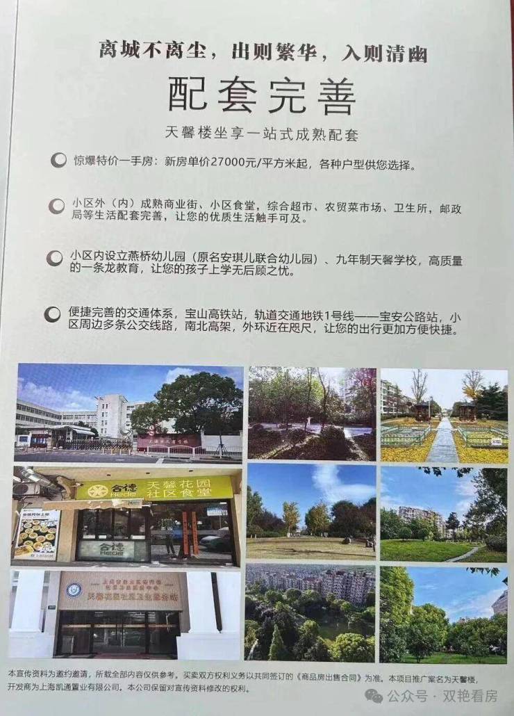 天馨花园 (推广名:天馨花园,备案名/别名: 天馨花园、天馨花园七期、天馨花园六期、天馨花园别墅 )是位于上海市宝山区杨行镇的大型成熟住宅社区,由 上海凯通置业有限公司 开发,自1998年起分多期滚动开发,最后一期于2009年交付,是宝山区域内开发周期长、体量大、配套成熟的标杆型居住大盘。项目涵盖多层、小高层及别墅等多种建筑形态,满足刚需、改善及高端家庭的多样化居住需求。