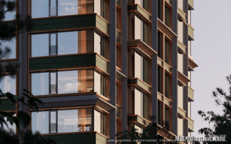实现上海转角连续约 12米无柱全景舱户型,部分户型 270°转角飘窗以及全景舱户型的落地,贯彻「公园观礼台」主线,将景观充分揽入室内。