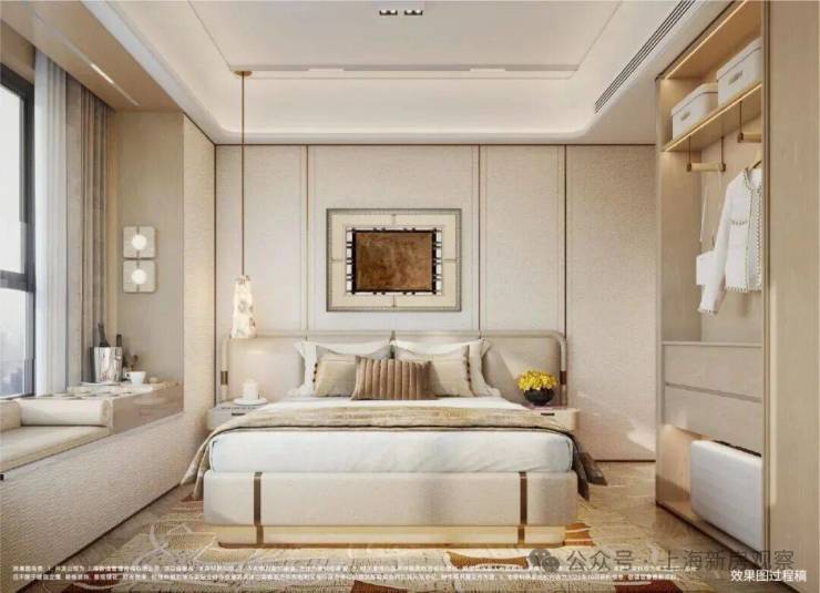 270°无柱飘窗的主卧套设计,打造出一座“空中观景舱”,将晨昏光影、四季流转尽数收纳,极大拓展了生活的视觉与心理边界,推窗即览美景,让居家时光更具诗意。