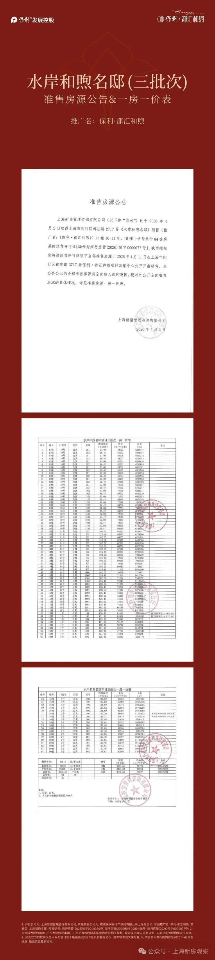 均价73297元/㎡!闵行15号线地铁盘「保利·都汇和煦」三批次认购中!加推建面约98-139㎡3-4房丨附一房一价表!