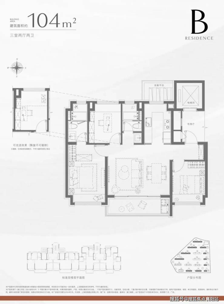 (二)建面约 104㎡三室两厅两卫:三口之家优选,空间进阶之选