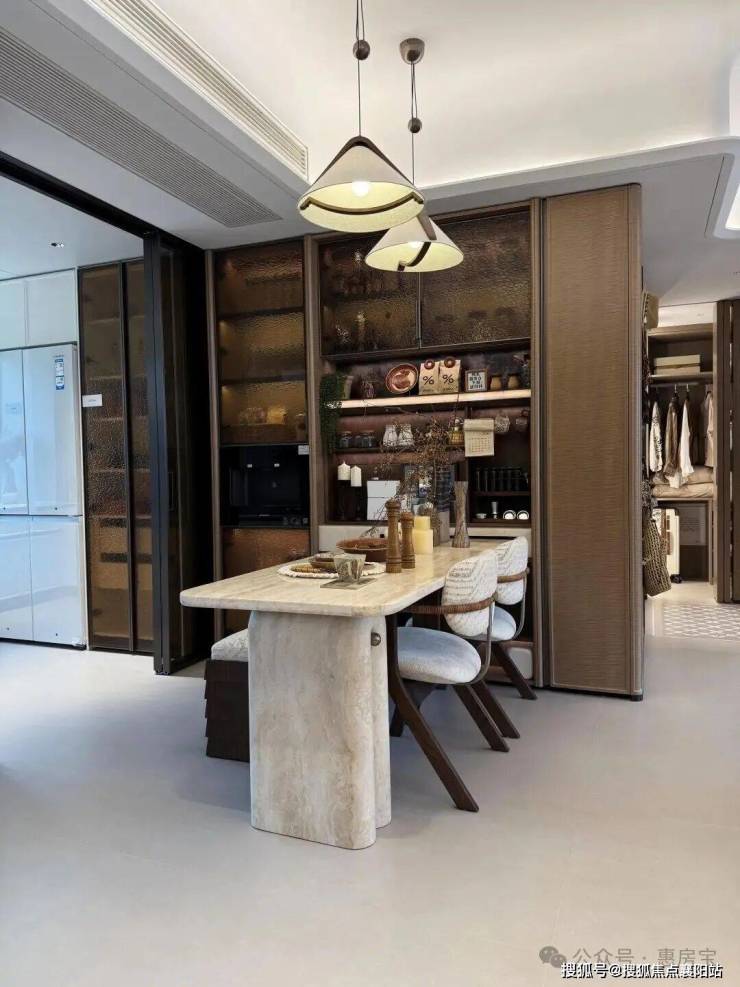 入户设置800库空间,它和传统玄关柜的区别在于:从“平面收纳”升级为“立体仓库”,储物功能更强大!约5米面宽横厅,多出来一个灵动空间,可根据个人需求定制为开放式书房、茶室等;岩板+金属饰面电视背景墙同样为交付标准;LDK一体化,餐厅区域可轻松放下6人位餐桌,并预留餐边柜位置;U型厨房,配置方太四件套(油烟机、灶具、洗碗机、蒸烤一体机)、科勒水槽及龙头等,基本所见即所得;同时厨房也附赠飘窗,将飘窗台面与橱柜一体化设计,做为了水槽区域,极大的提高了厨房空间的实用面积!边套户型主卧为270°转角飘窗,并预留两个衣柜空间;北卧为封闭阳台,实际交付时阳台会改造到位,地暖通铺,地板墙纸通铺,吊顶做好,可参考样间效果。