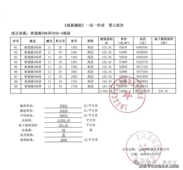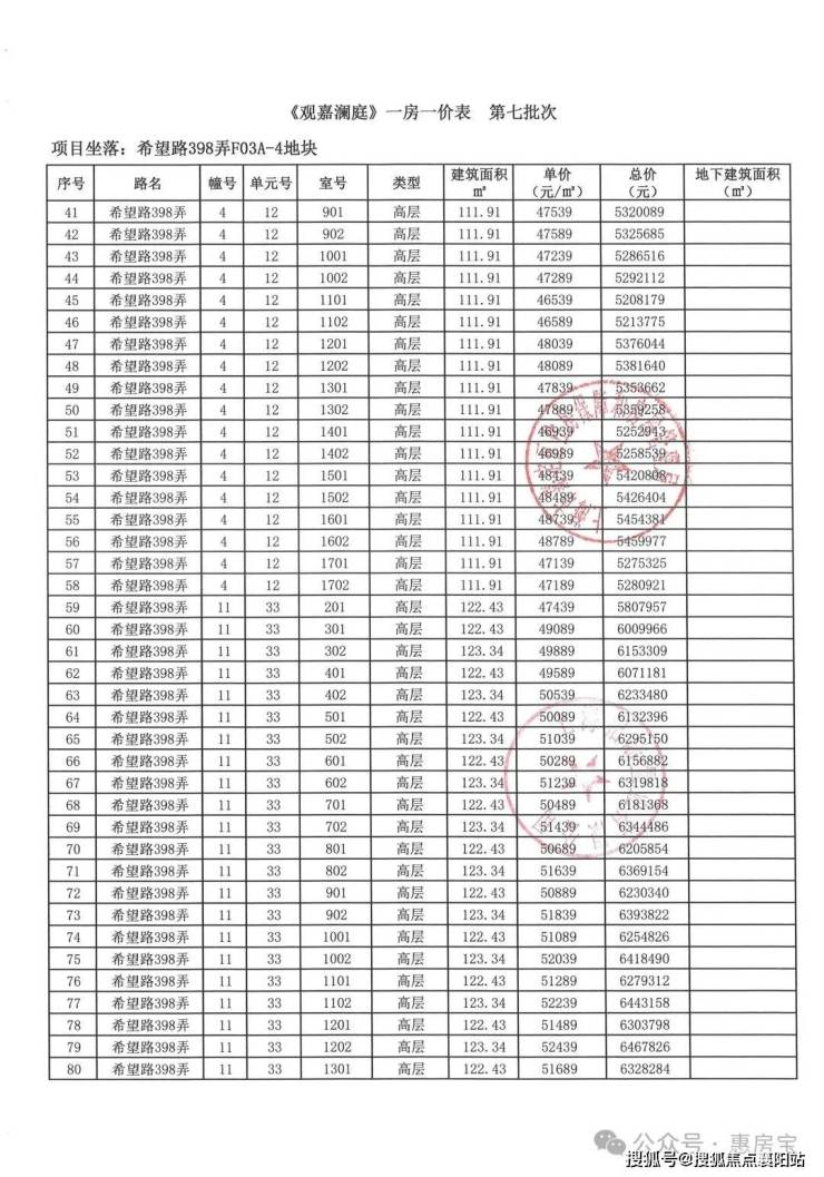 一房一价如下: