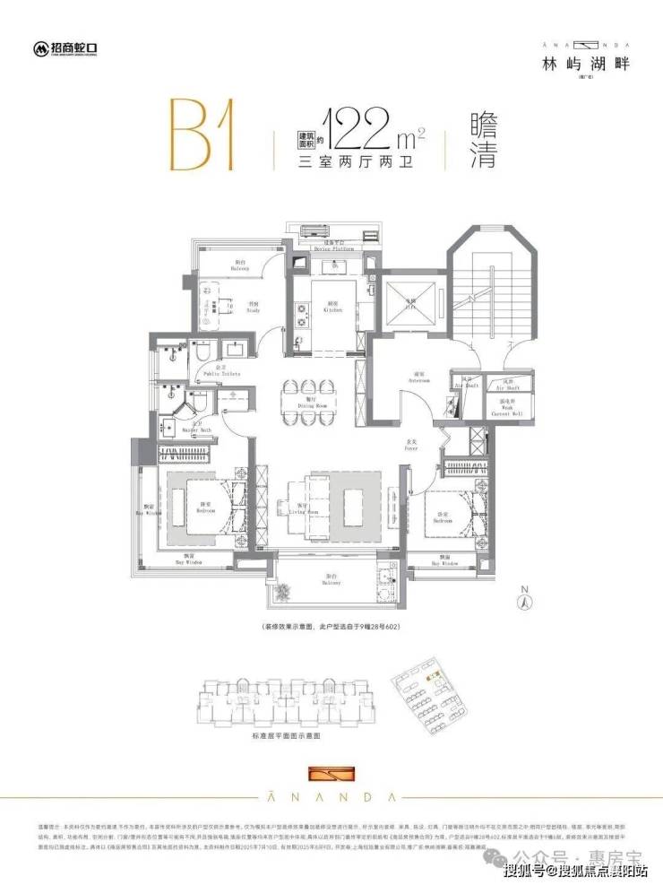 该户型分布在6号楼、9号楼、11号楼以及13号楼,其中9号楼位置最佳,南向楼间距约46米,下沉式庭院景观一览无余,下楼即达会所空间!