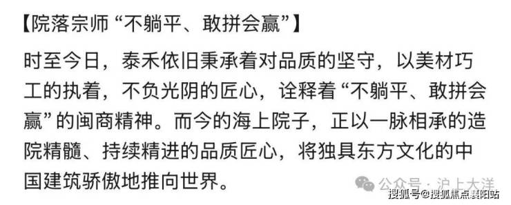 泰禾海上院子不仅是一个居住的场所,更是一个传承东方文化的载体。项目深入挖掘东方文化的内涵,将东方文化的元素融入到社区的每一个角落,营造了一个和谐、友爱、互助的社区氛围。