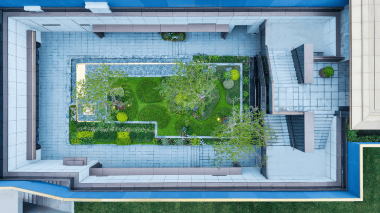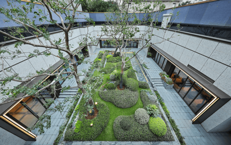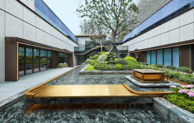 从意大利 爱马仕灰 到 普拉达绿 ,项目内部以尊贵石材勾勒出了景观轮廓。