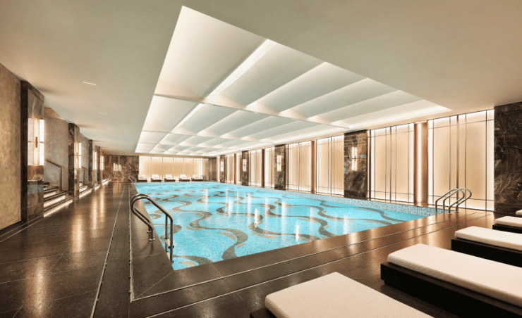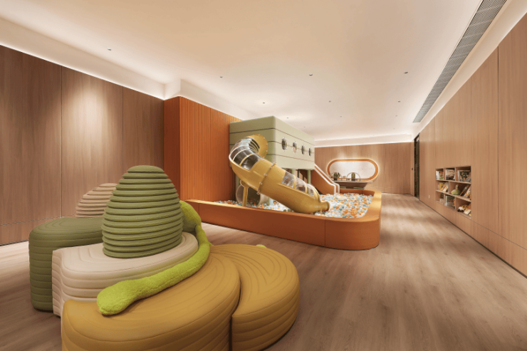 04. 最后是会所的打造 ,项目在北区块设置了约1500平的下沉式会所,是 板块当前最大的私属会所空间 , 对标星级酒店,包含了 恒温泳池、潮流健身瑜伽房/童玩空间/健身房/棋牌室 等多元活动空间。