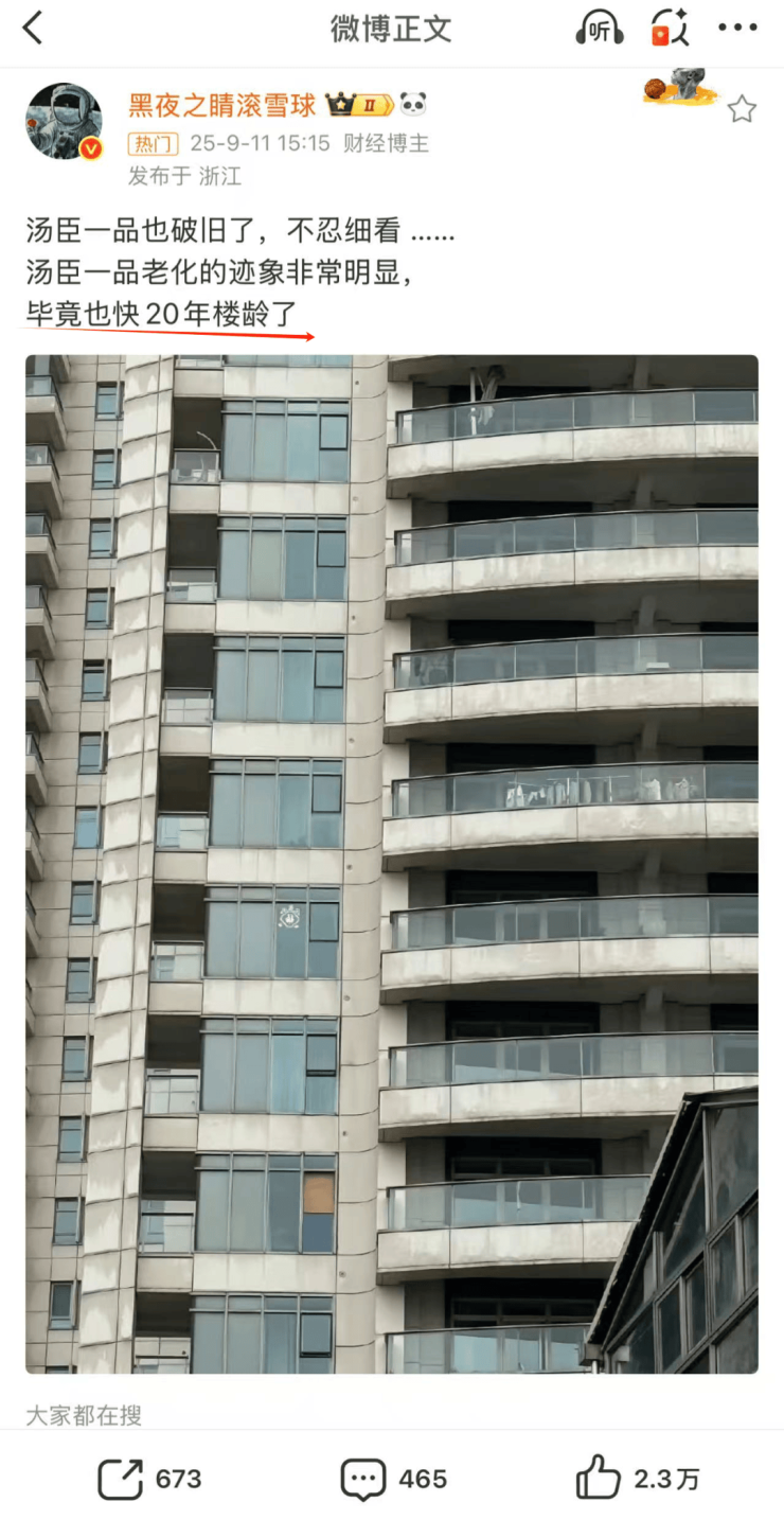 例如前不久被推上热搜的上海顶豪代表 【汤臣一品】 ,就因外立面采用的 铝板(容易老化显老),英雄迟暮!