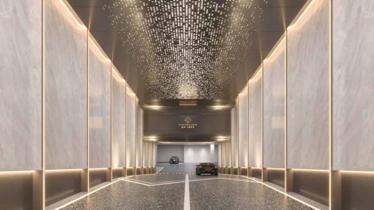 地下车库、地下入户大堂同样非常重工! 星空吊顶入口,车行道和立柱全是石材!精装标准的吊顶+入户大堂 !尊贵感、仪式感及颜值都拉满!