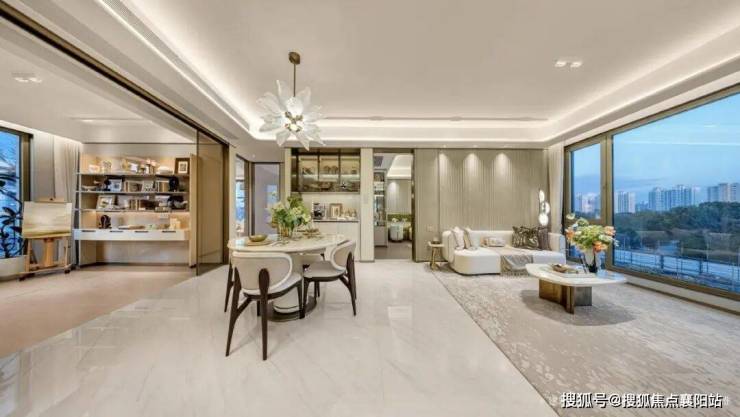 最大约7.5米南向餐客厅, 视野开阔,可赏宽幕园林; 约20~33㎡一体化餐客厅面积 ,形成宽奢的一体化家庭聚厅,亦从容承载圈层社交与亲子互动。