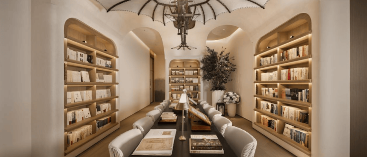 阅读室分为公共阅读区与独立自习区,是业主阅读、办公、学习的绝佳场所。空间内以达芬奇飞行器手稿为灵感,打造“木鸢溯风”艺术装置,运用非遗技艺,营造出浓厚的人文氛围;更罕见地为自习室配置了弥散氧设备,能够快速提升空间含氧量,让学习、办公更有效率,尤其适合有孩子的家庭,为孩子营造优质的学习环境。