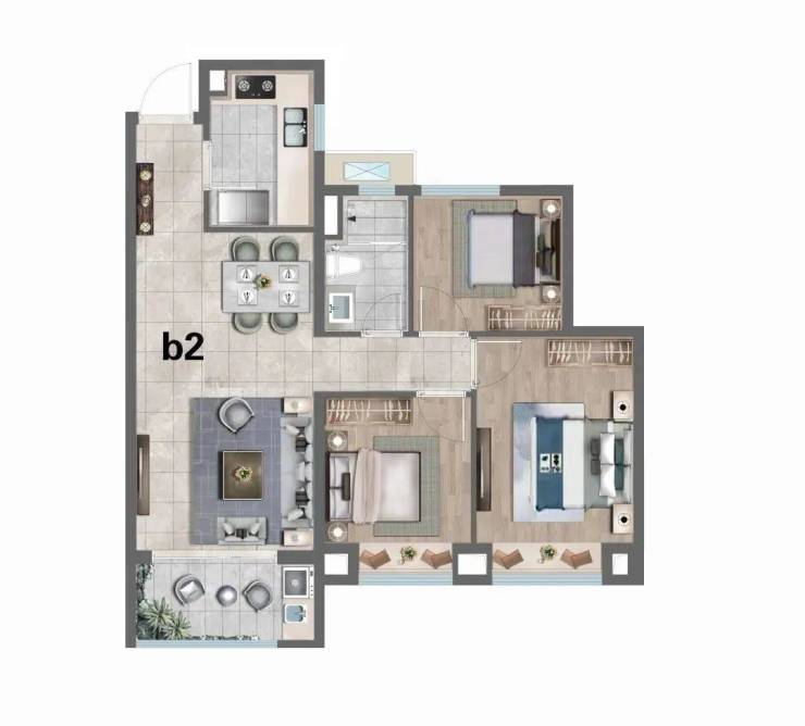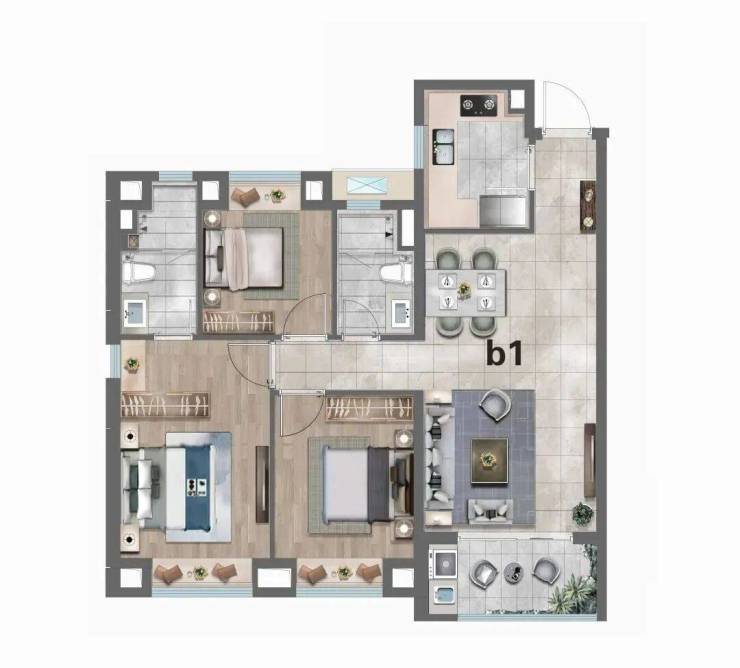 走进户型空间,每一处设计都藏着对生活的考量。主力125㎡三房两厅两卫户型,采用全明格局设计,南向三开间让阳光铺满房间的每个角落。