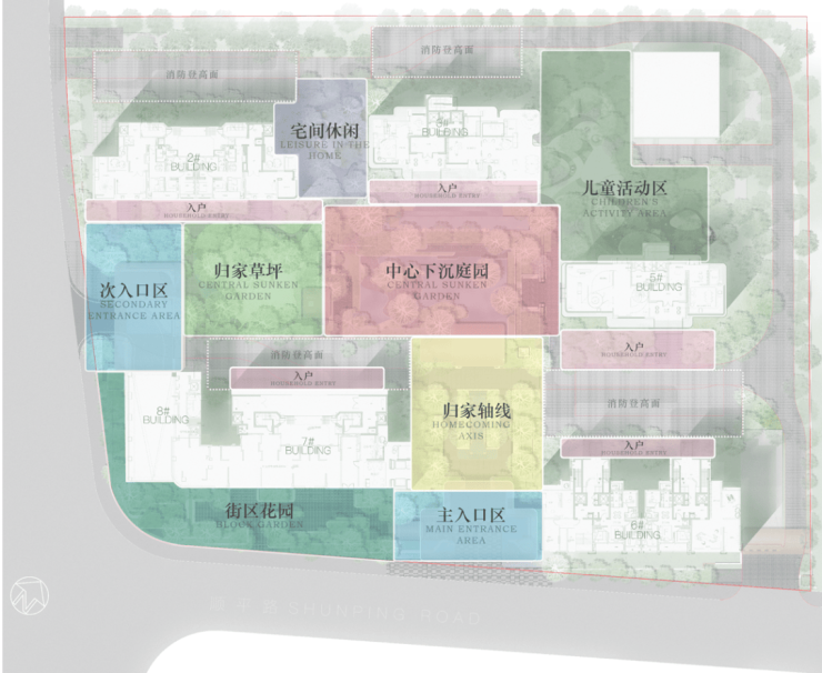 1. 建筑规划:南低北高,半围合布局