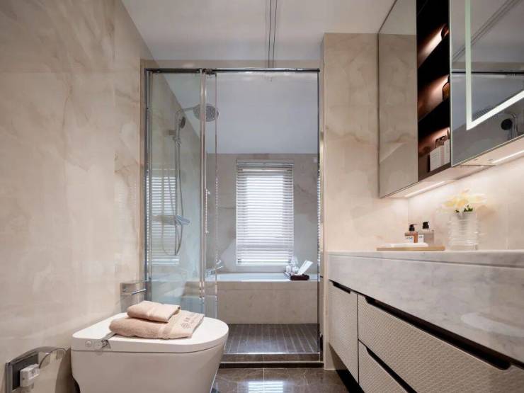 卫浴系统甄选伦敦宝格丽酒店同款 汉斯格雅五金 ,配备全球五星级酒店及总统府标配的 杜拉维特卫浴套装 与 恩仕AXENT智能马桶 。