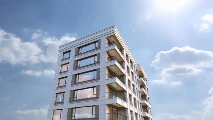 其一,项目外立面以 新古典建筑风格 为魂,甄选 巴西进口白世贸石材, 并且干挂到顶!