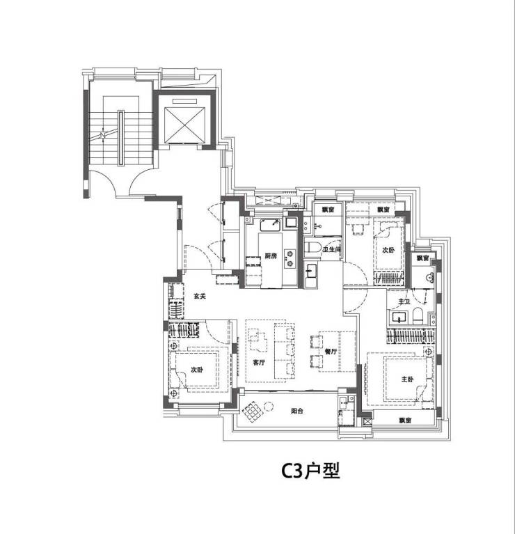 全卧瞰景飘窗设计+ “独立”电梯厅 ,实用面积非常高!