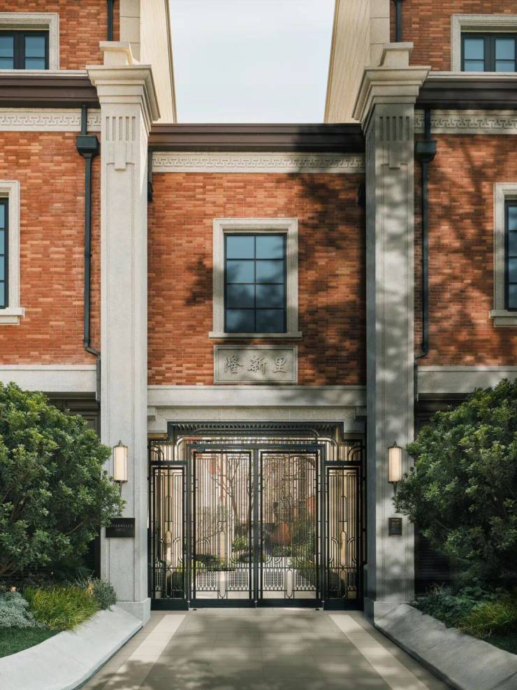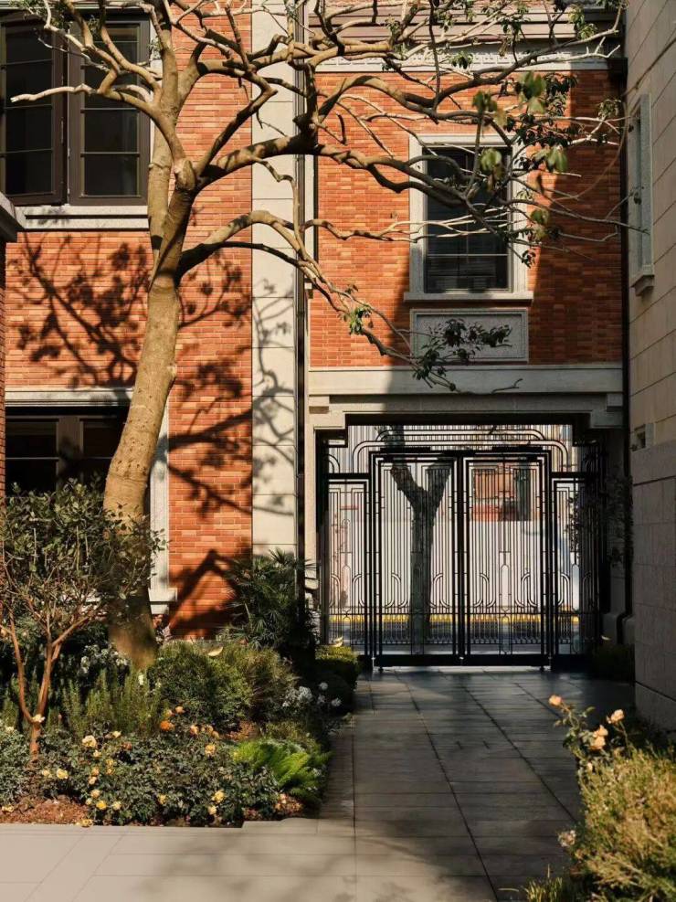 建筑整体延续 “花园里弄” 形态,布局 “四海一心” 街巷空间,打造 “主街 - 小巷 - 庭院” 三级递进空间序列,复刻上海老洋房 “弄堂情怀、庭院生活” 的居住精髓。每户皆设 独门独户、私家庭院、独立入户门廊 ,搭配 1.8 米高围墙,既保障绝对私密性,又不影响采光通风,完美契合塔尖人群 “私密、尊崇、专属” 的居住需求。建筑整体低调奢华、底蕴厚重,契合海派文化 “中西合璧、精致优雅、内敛奢贵” 的内核,成为杨浦滨江的城市文化地标。
