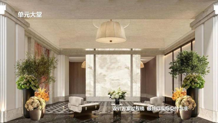 归家社区大堂、大堂廊厅、以及入户大堂都彰显出社区高水准的海派高定设计语言,归家仪式感满满~