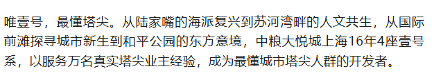 时间往前倒推15年,中粮大悦城围绕上海“一江一河”战略,布局5座壹号系豪宅作品,每一个都是板块标杆豪宅,拥有板块独立定价权!